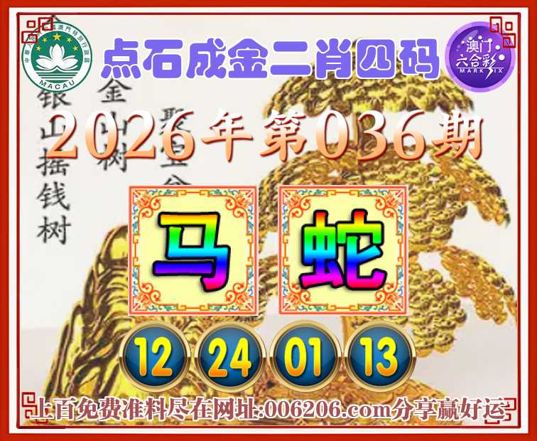 036期:《点石成金》  ♣️二肖四码 ♣️【马】【12.24.01.13】开:蛇01准公开见证