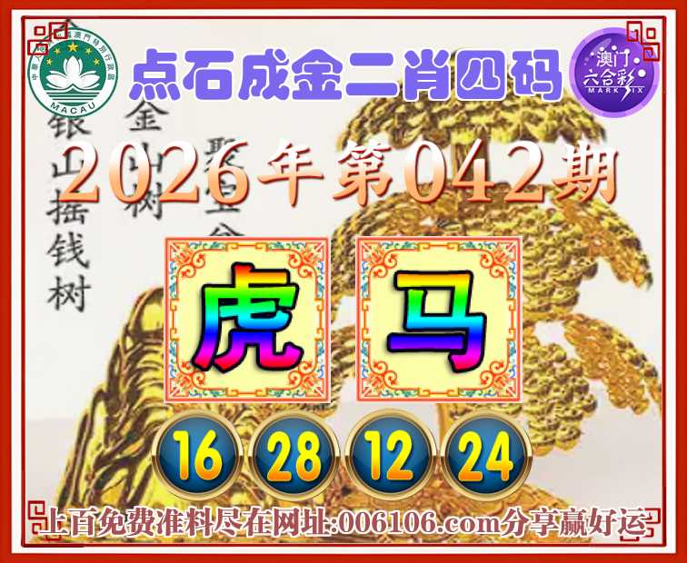 042期:《点石成金》  ♣️二肖四码 ♣️【马】【16.28.12.24】开:虎16准公开见证