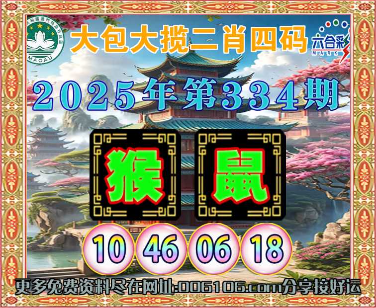 334期:〖大包大揽〗 🍖二肖四码🍖【鼠】【10.46.06.18】开:猴46准公开见证