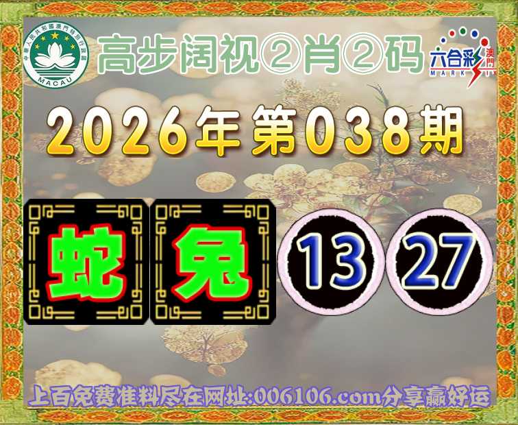 038期:【高步阔视】 ☝️②肖②码☝️【蛇兔】【13.27】开:鼠42