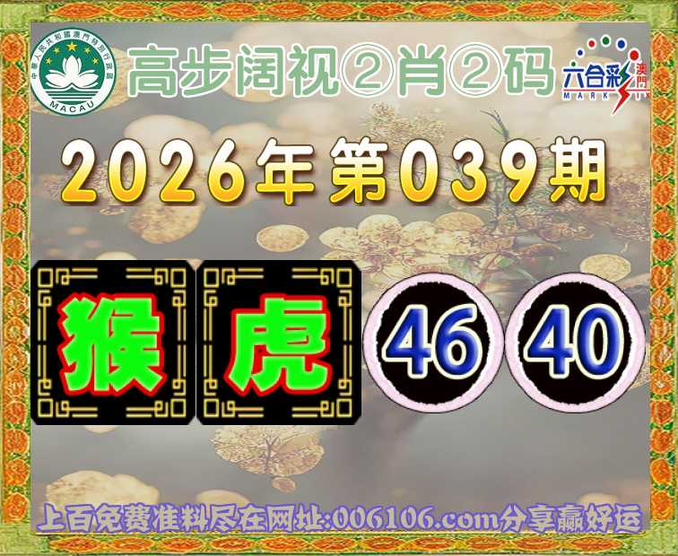 039期:【高步阔视】 ☝️②肖②码☝️【猴虎】【46.40】开:羊11