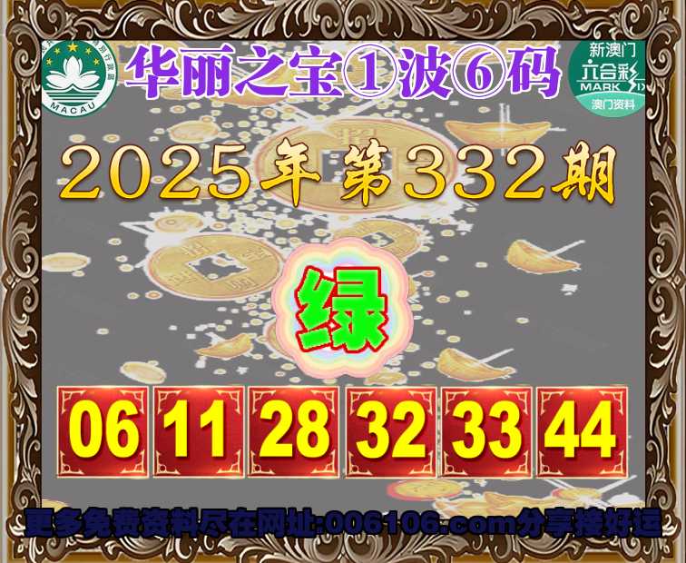 332期:《华丽之宝》 🐁①波⑥码🐁【绿波】开:龙26