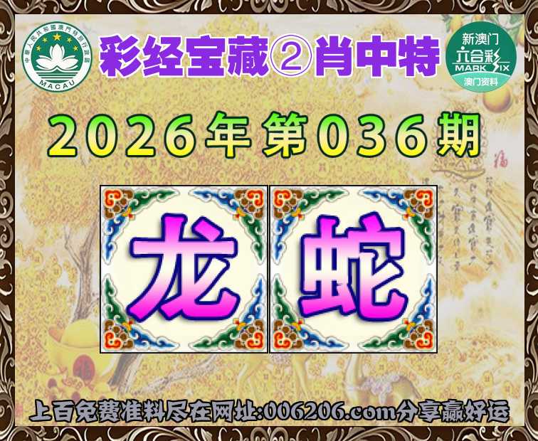 036期: 🥉『彩经宝藏』 🥉②肖中特🥉【龙.】开:蛇01准公开见证