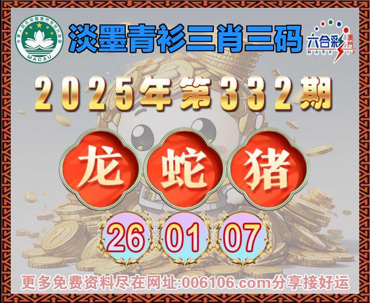 332期: 🚵‍♀️『淡墨青衫』 🚵‍♀️三肖三码🚵‍♀️【蛇猪】【26.01.07】开:龙26