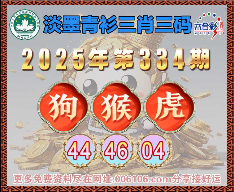 334期: 🚵‍♀️『淡墨青衫』 🚵‍♀️三肖三码🚵‍♀️【狗虎】【44.46.04】开:猴46准公开见证