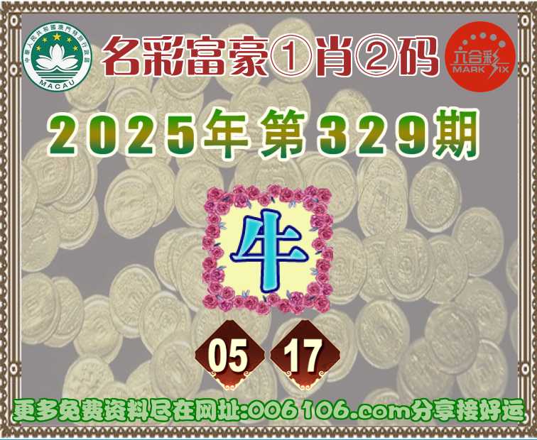 329期:〖名彩富豪〗 ♣️①肖②码♣️【】【05.17】开:牛17