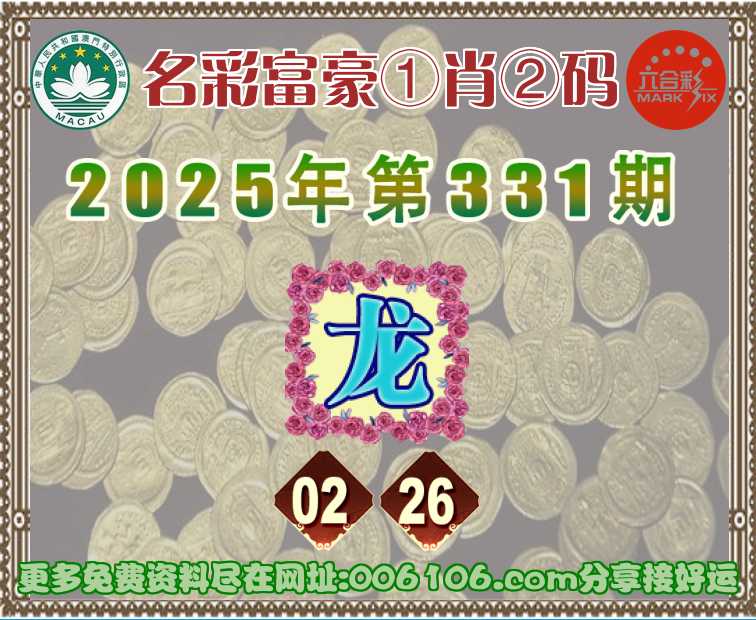 331期:〖名彩富豪〗 ♣️①肖②码♣️【】【02.26】开:龙26