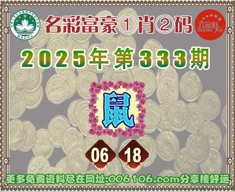 333期:〖名彩富豪〗 ♣️①肖②码♣️【】【06.18】开:鼠06