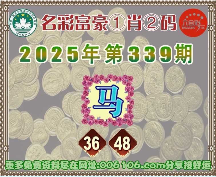 339期:〖名彩富豪〗 ♣️①肖②码♣️【】【36.48】开:马48准公开见证